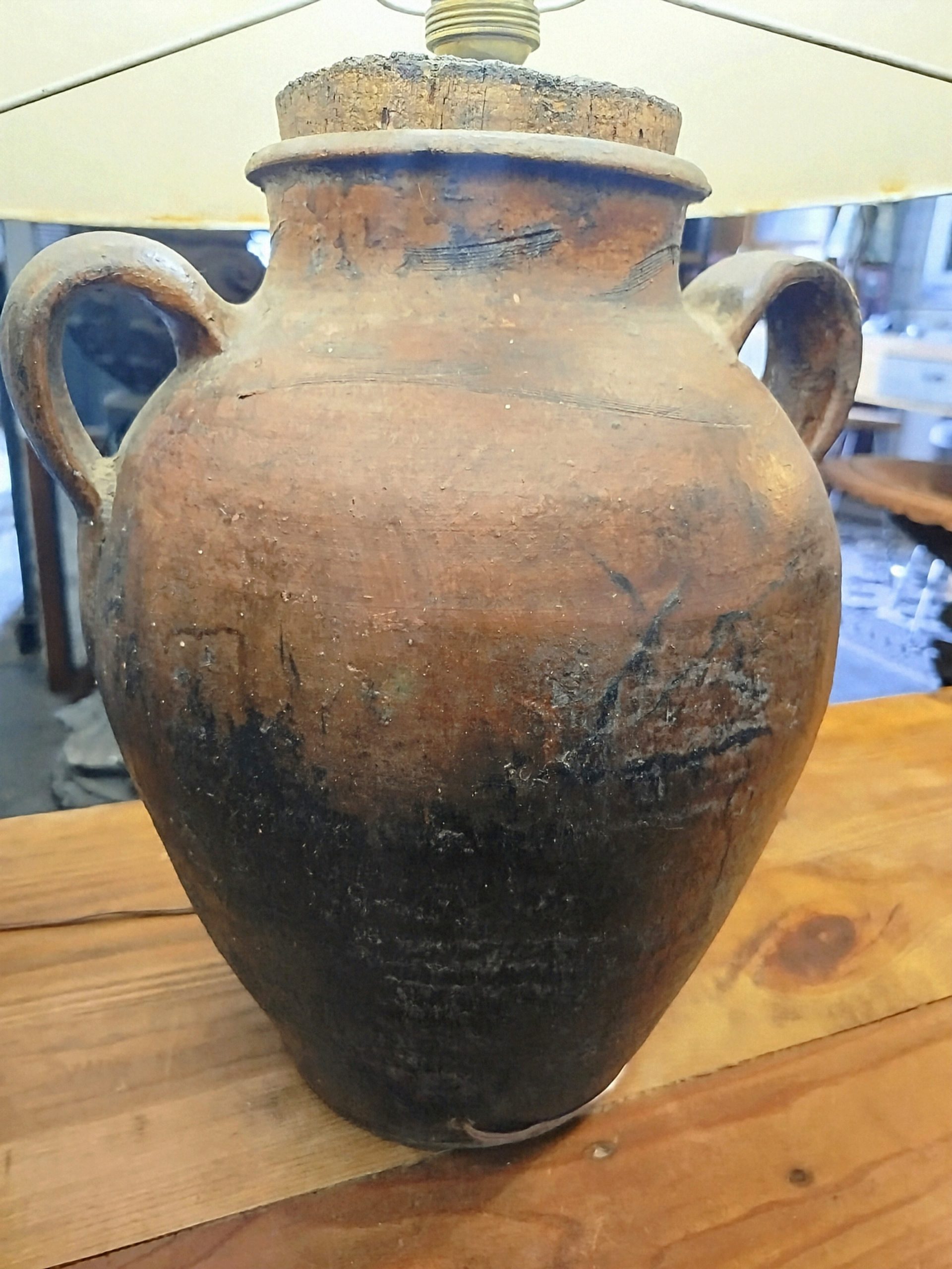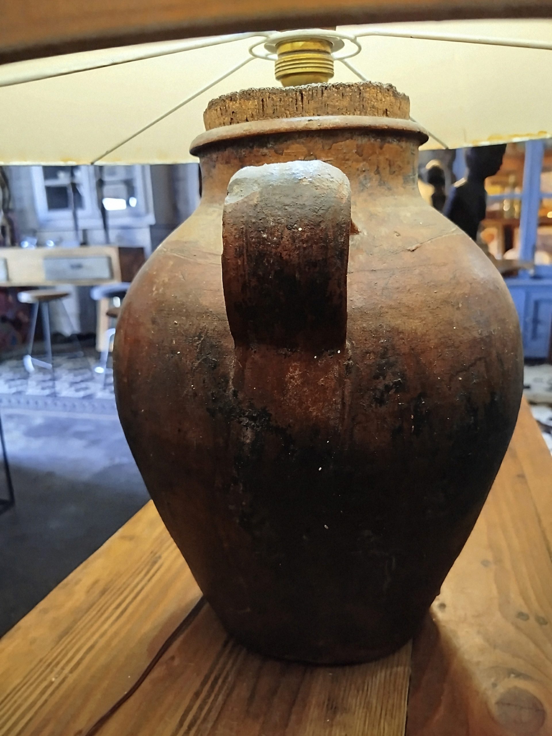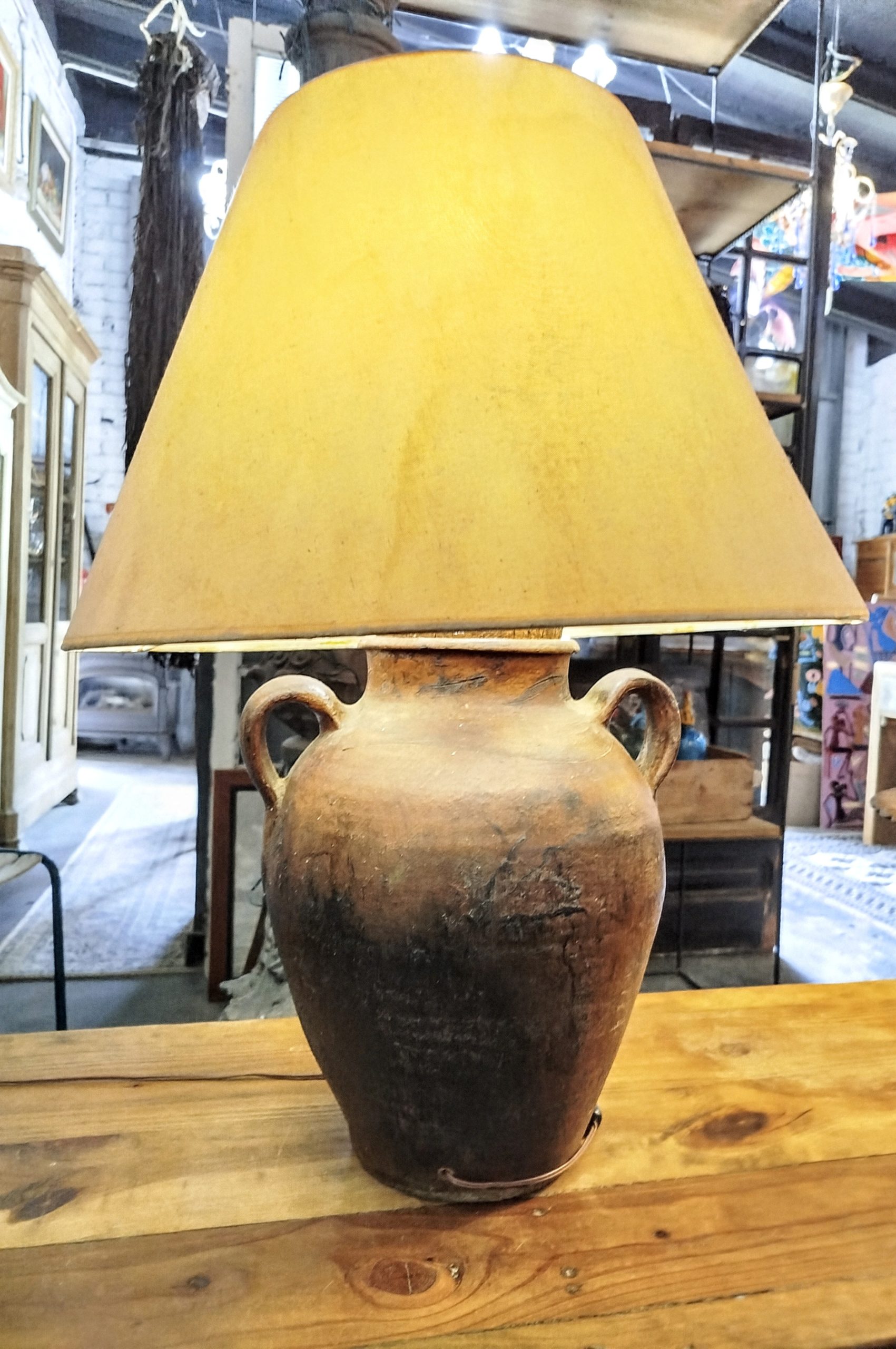 Bonita  lámpara de mesa , base compuesta por una tinaja aragonesa ,  linea rústica , tradicional, atemporal, contemporánea y muy actual, no te conformes con réplicas , copias de baja calidad, apuesta por piezas antiguas, de calidad y precio asequible.